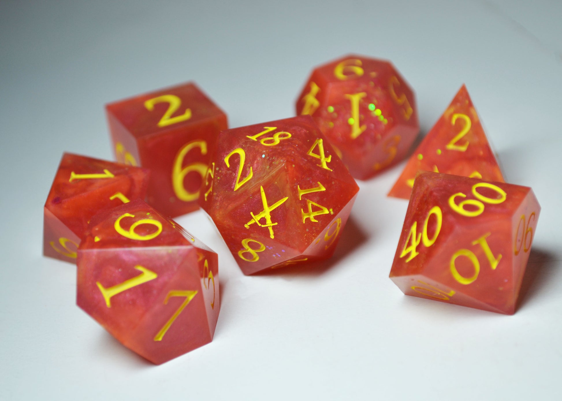 True Strike Resin Dice are handmade in-house, although we strive for quality and each set is assessed personally some imperfections can be expected. Because no two sets are the same, the product you receive may vary from the photos depicted.
